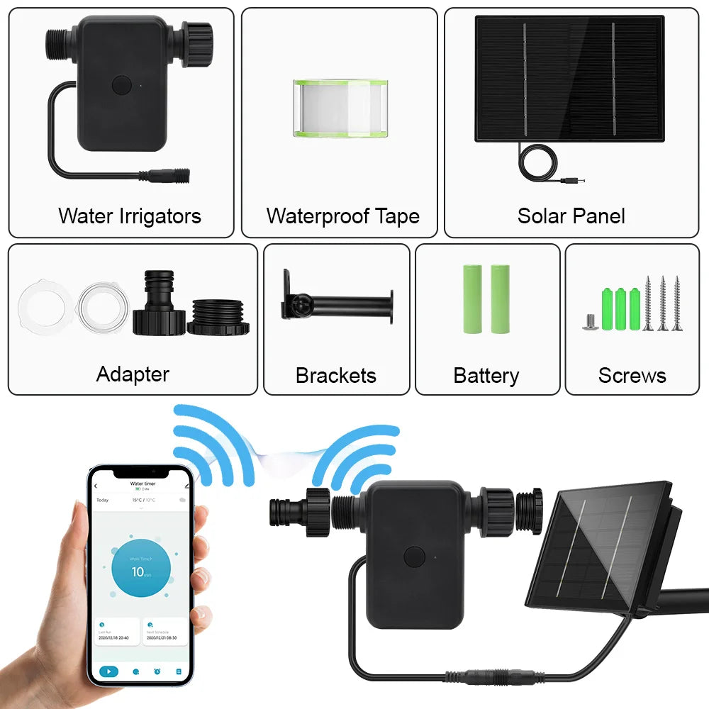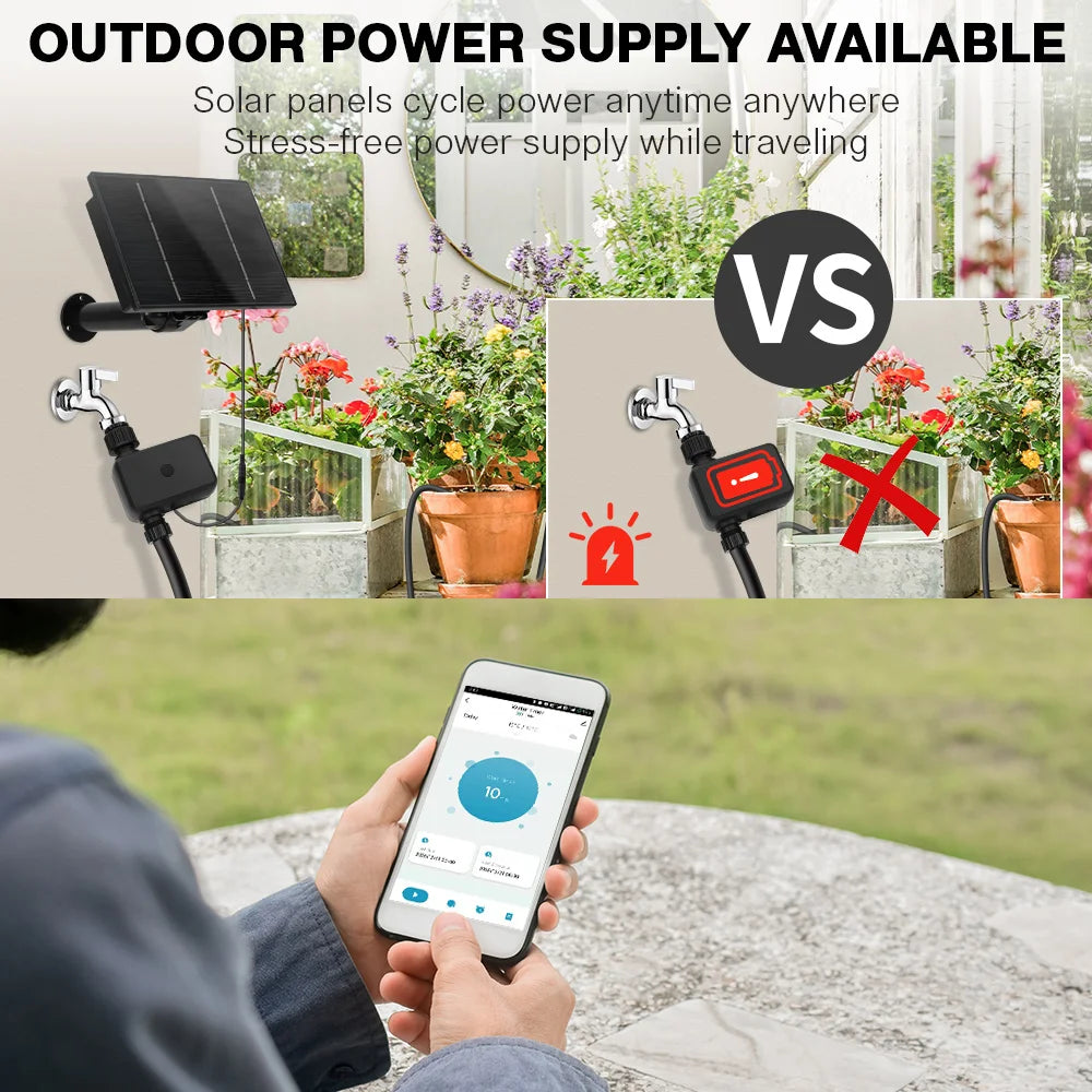 The Solar Intelligent Irrigation Kit, which makes irrigation more convenient and has a wider range of applications. They are suitable for automatic watering of plants in lawn irrigation, terraces, gardens, vegetable irrigation, hanging baskets, potted plants, flower beds, greenhouses, and other places